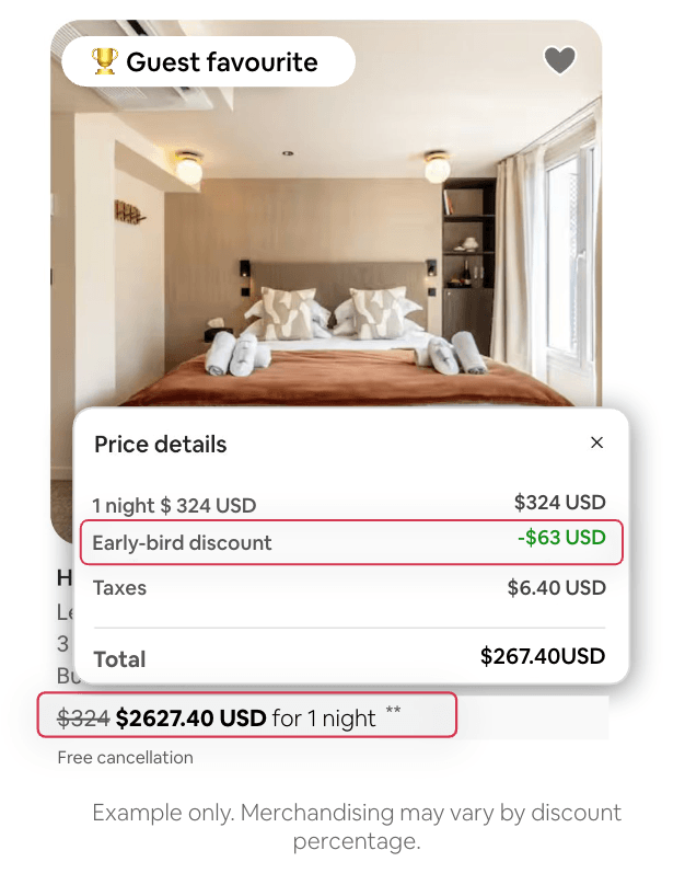 - В подробной информации о ценах появится отдельная строка для «скидки за раннее бронирование», в которой будет четко указана сумма экономии.
