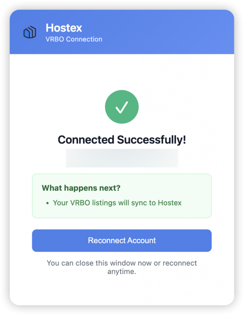 连接仅在您登录期间保持有效。注销将断开 Vrbo 与 Hostex 的连接。