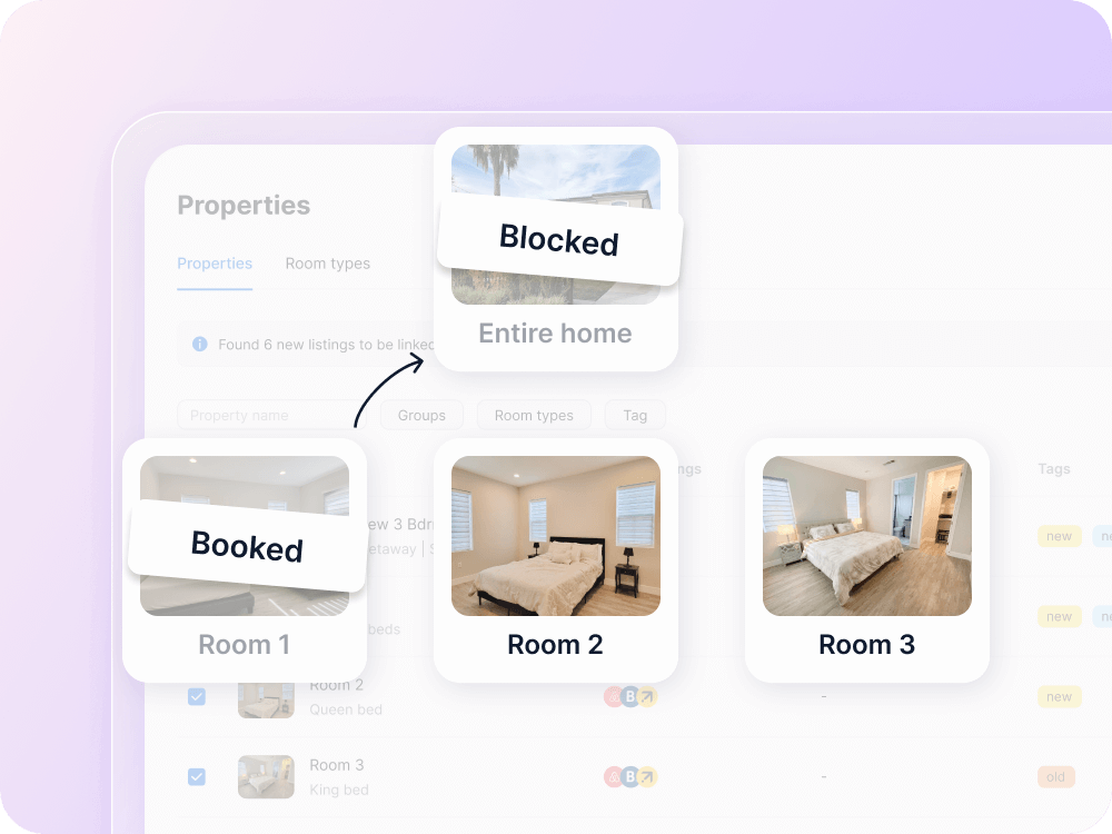 Keep entire rooms and individual beds perfectly in sync. Any full-room booking disables each single bed, and any single-bed booking disables the full room automatically.