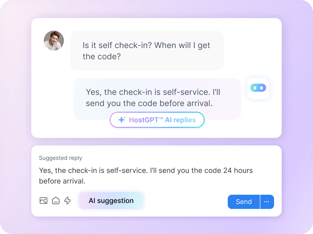 Set rules for properties, timing, tone, and escalation. Choose between fully automated replies or AI suggestions only.