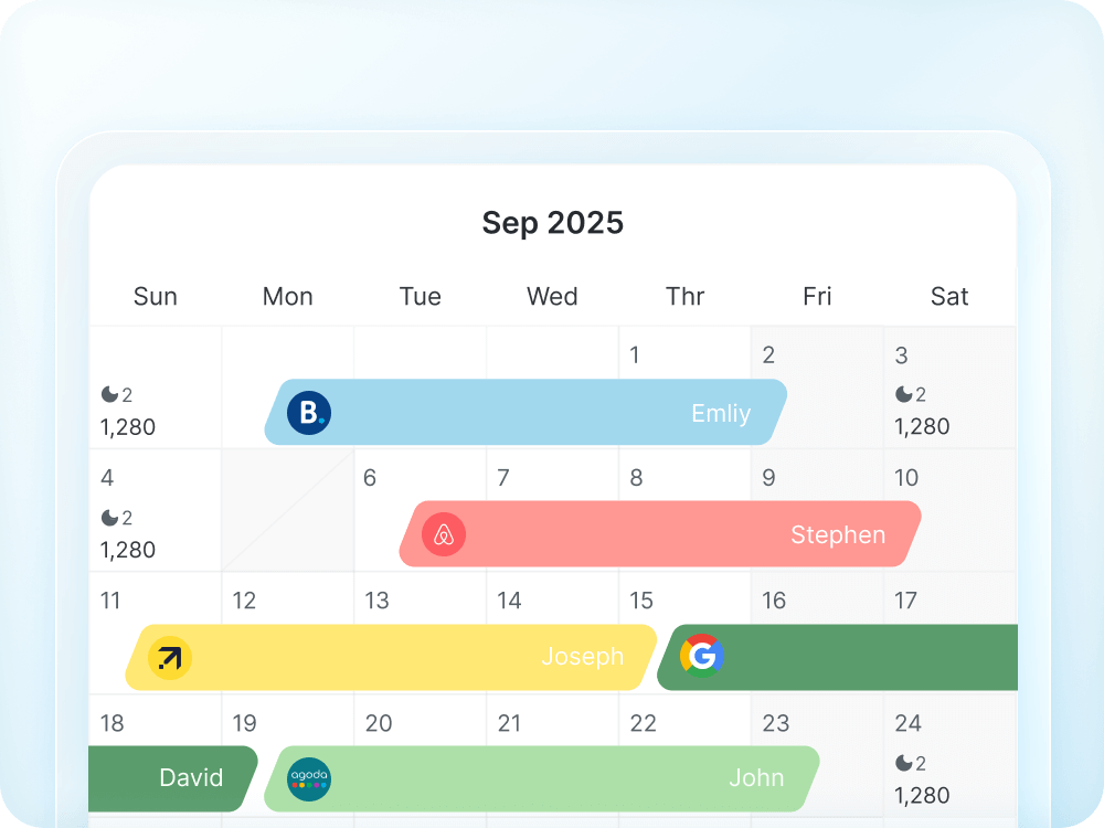 Hostex's calendar reflects the true physical status of your properties, not just virtual availability on channels. Any update you make syncs instantly across all connected platforms: